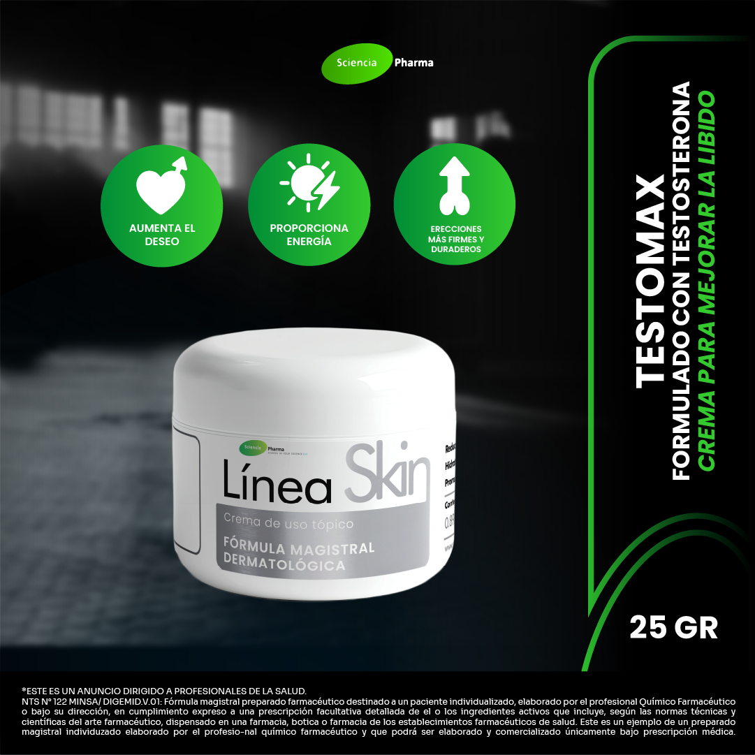 Testomax es una crema formulada con testosterona, diseñada para mejorar la libido, el rendimiento sexual y la vitalidad masculina. Su textura ligera y de rápida absorción permite una acción localizada eficaz, mejorando la circulación y favoreciendo erecciones más firmes. Ideal para quienes buscan una solución tópica para potenciar su desempeño íntimo.